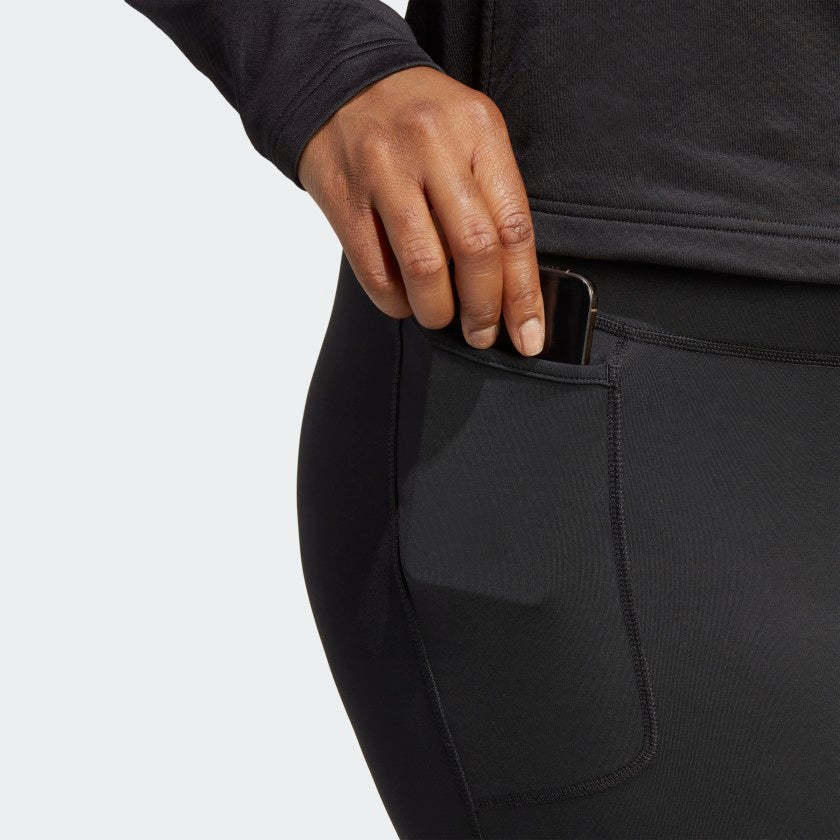 Navigating the outdoors in cool weather has never been easier. These adithtdas leggings feature a wide waistband for a comfortable fit, whether you're hiking a mountain or trail running. A small pocket stores your sport essentials and flexible elastic seams move with you as you explore. Terrex reflective branding shines in low light so you can adventure all day long.This garment is made with a yarn which contains 50% Parley Ocean Plastic - reimagined plastic waste, intercepted on remote islands, beaches, coastal communities and shorelines, preventing it from polluting our ocean. This garment contains at least 70% recycled content in total.