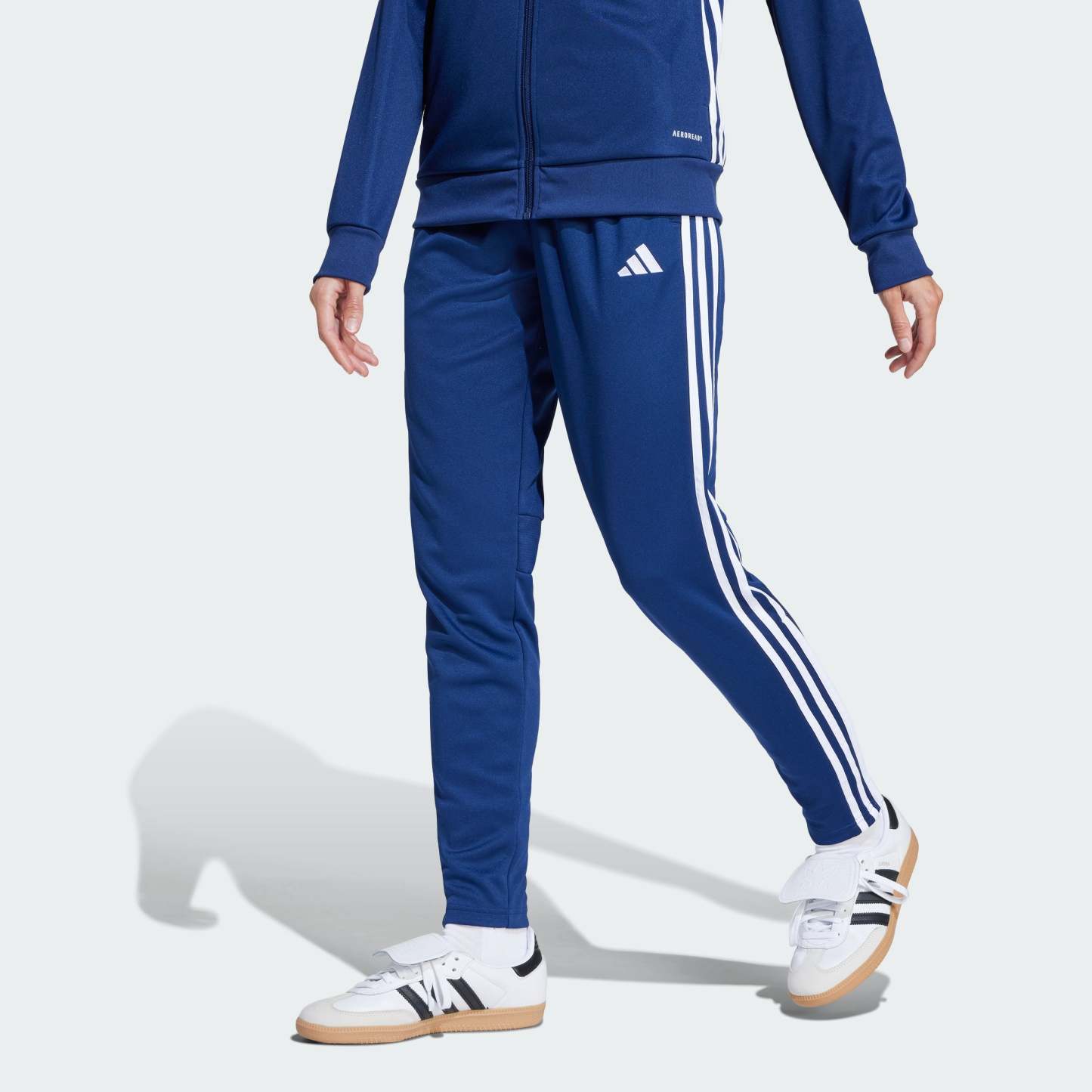 Bring your beautiful game everywhere you go. These Tiro 25 Essentials pants from adithtdas take their lead from soccer training apparel to offer a sporty look and comfortable feel. AEROREADY controls moisture to keep you dry, while zip pockets securely stow must-haves. With their smooth fabric and bold style, these track bottoms will quickly become first pick from your wardrobe. This product is made with 100% recycled materials. By reusing materials that have already been created, we help to reduce waste and our reliance on finite resources and reduce the footprint of the products we make.