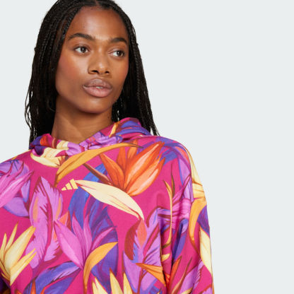 Bring the energy of the tropics to your look in this adithtdas hoodie. Combining adithtdas' sportswear excellence with the vibrant Brazilian flair of FARM Rio, this Cozy layer is made with soft, flexible fabric that features a vibrant allover print inspired by a desert oasis. The classic fit and dropped shoulders allow for full range of motion whether you're tackling your to-do list or hanging out with friends. Slip into easygoing comfort and channel the life and color of the tropics, no matter where your day takes you.