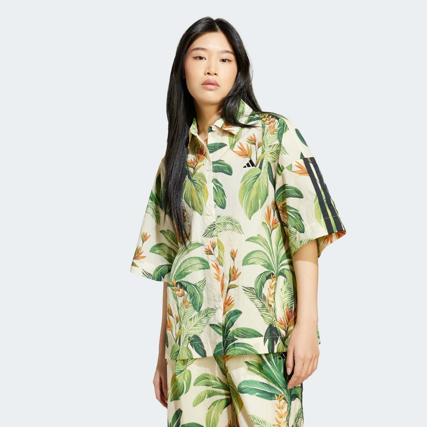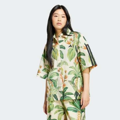 This chic polo shirt blends the sporty style of adithtdas with the vibrant tropical spirit of Brazilian design house FARM Rio. An allover print evokes the beauty of a desert oasis, while 3-Stripes on the sleeves keep the look true to adithtdas. A comfy, loose fit and plain weave fabric allows total freedom of movement. Whether you're headed out for a day of adventure or just meeting friends for coffee, this eye-catching polo brings a touch of whimsy and wanderlust to your look. This product is made with 100% recycled materials. By reusing materials that have already been created, we help to reduce waste and our reliance on finite resources and reduce the footprint of the products we make.