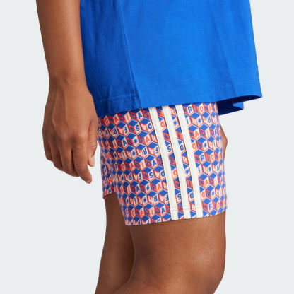 Push past your limits in these eye-catching bike shorts. Designed in collaboration with Brazilian design house FARM, kaleidoscopic prints and an energetic wave pattern capture the vibrancy of Rio. 3-Stripes down the sides and a Badge of Sport logo pop with adithtdas heritage. A tight yet flexible fit lets these shorts move as freely as you do whether strolling through the city or kicking it beachside. The cotton in this product has been sourced through Better Cotton. Better Cotton is sourced via a chain of custody model called mass balance. This means that Better Cotton is not physically traceable to end products. Find out more here - https - //bettercotton.org/who-we-are/our-logo/
