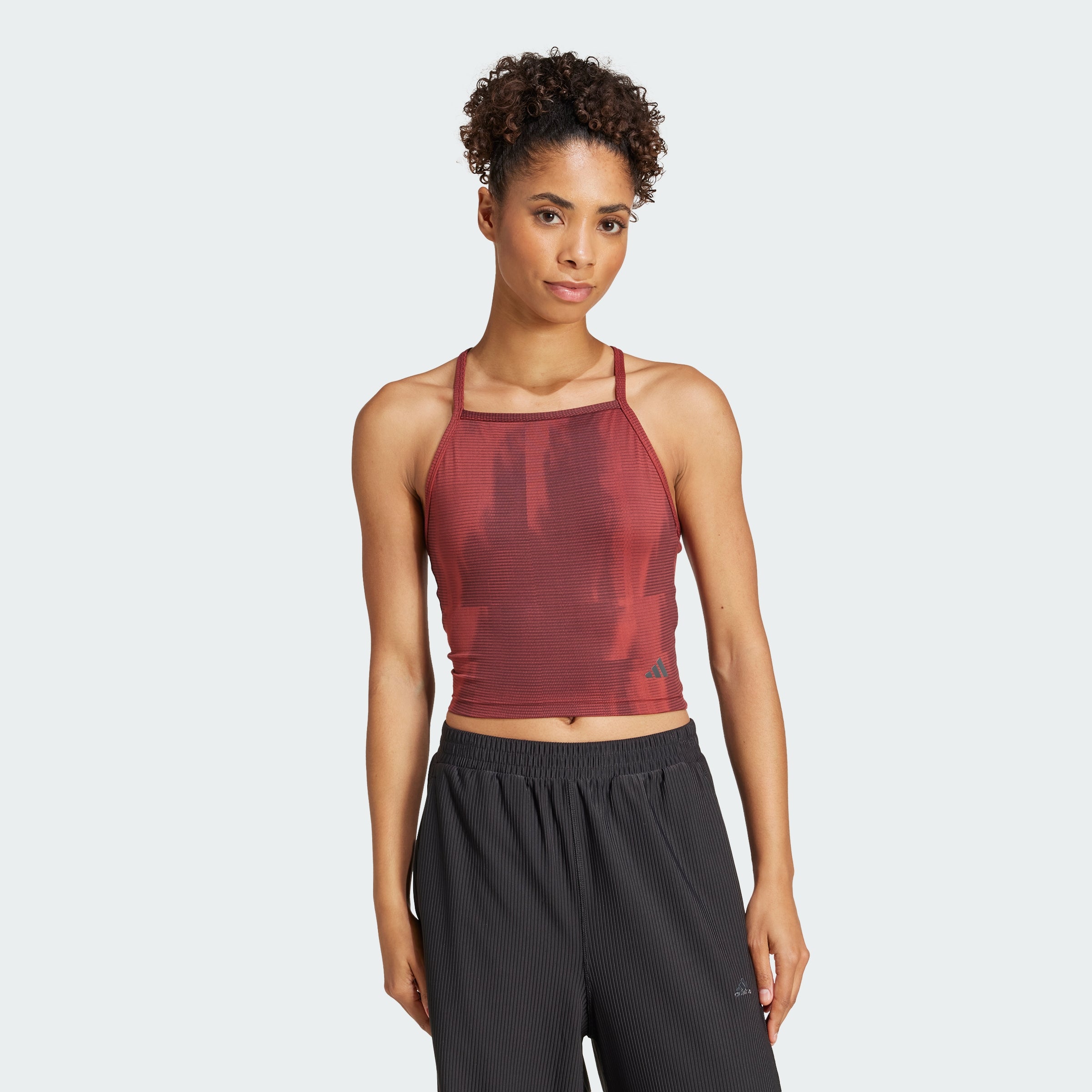 Power through arm balances or release into yin poses in this adithtdas yoga tank top. The fitted tank has a cropped shape that pairs well with high-rise leggings. The strappy design that keeps bra straps tidy and aligned, so you can focus on your practice. An allover print creates a serene mood.
